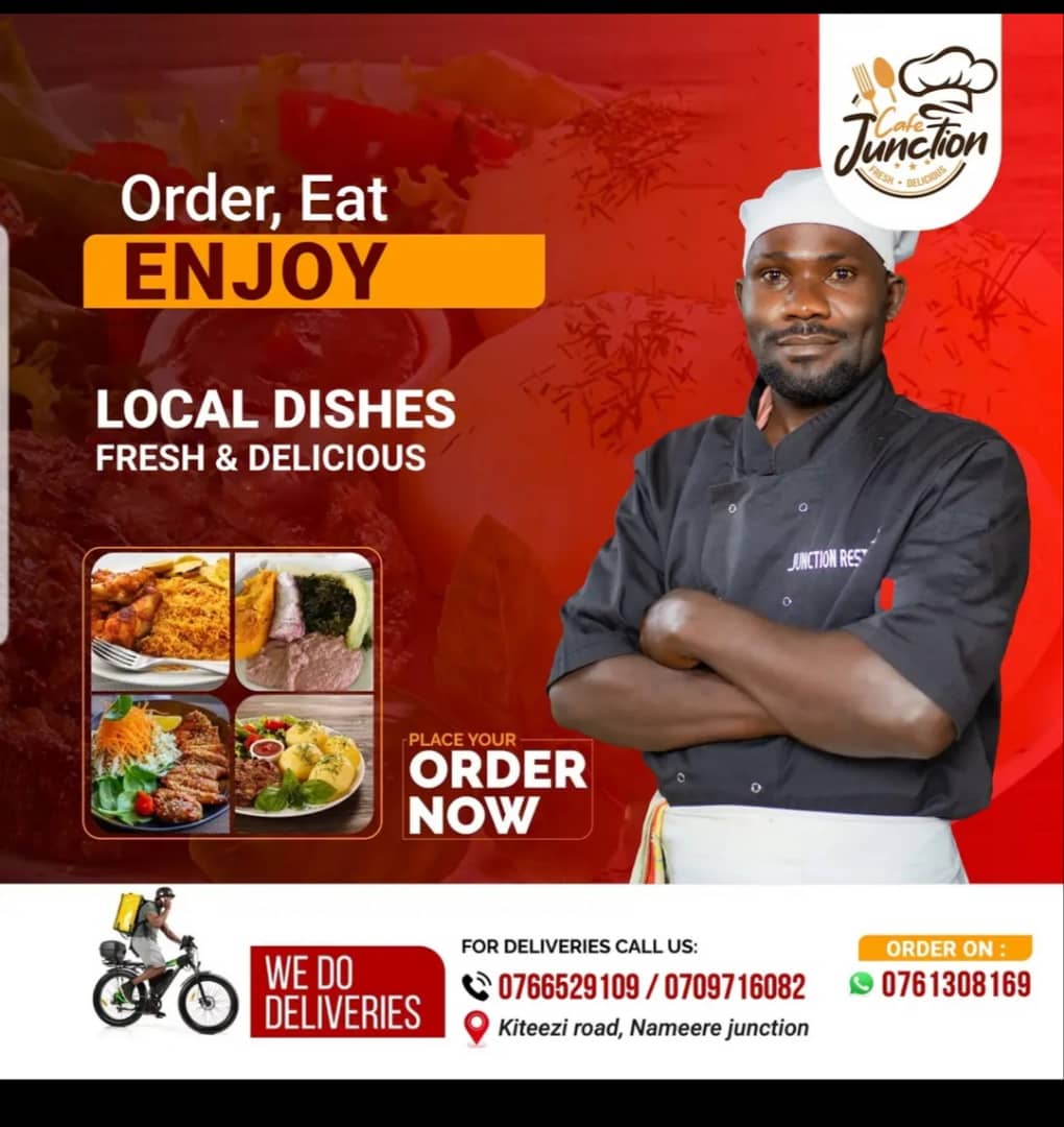 Here’s the cherry on top: we deliver everywhere! Yes, you heard that right. Café Junction brings your favorite meals and drinks straight to your doorstep across Kampala, Wakiso, and Mukono. Whether it’s a quick coffee fix, a smoothie to keep you cool, or a feast for the whole family, we’re just a call away.